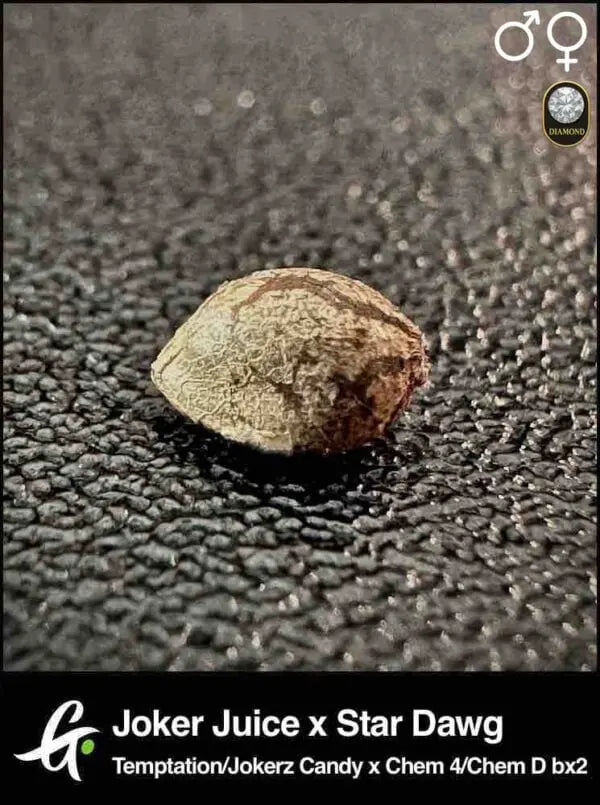 Diese Kreuzung vereint das Beste aus zwei Welten: die komplexe, moderne Genetik von Joker Juice, verstärkt durch die bewährte Chemdog-Linie von Stardawg, und schafft so eine Sorte, die sowohl optisch als auch in ihrer Wirkung beeindruckt.